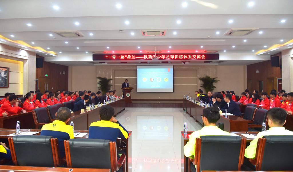 10月27日,由足球学院组织的“一带一路”荷兰—陕西青少年足球训练体系交流会暨足球专业实践活动在我院新网球馆会议室举行。英国365上市公司官网副院长文立新、足球学院朱军、陕西省足球管理中心副主任马冰泉、足球教研室主任席海龙、副主任马俊,荷兰鹿特丹费耶诺德足球俱乐部国际事务总监吉多•韦德、青训教练彼得•巴伦兹、青训教练迈克•奥比库、荷兰王国驻重庆总领事馆胡玺喆以及陕西省足球管理中心、陕西浪潮足球俱乐部相关负责人参加会议,会议由朱军主持。