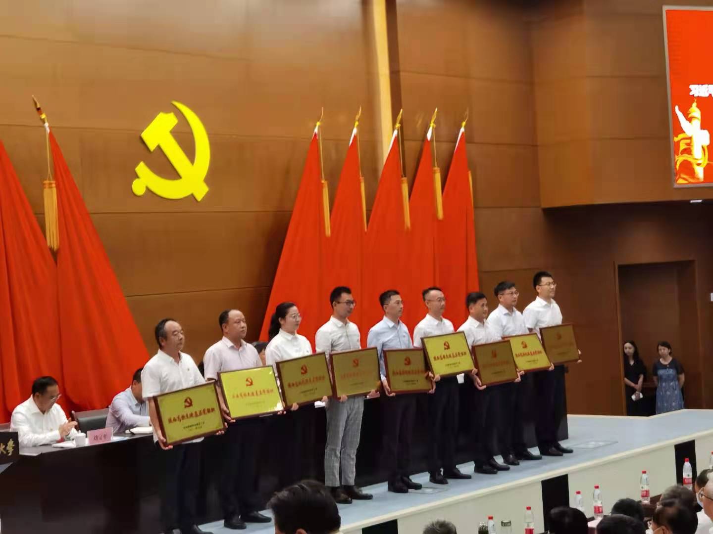 7月8日下午,省委教育工委在西安邮电大学长安校区逸夫报告厅召开陕西高校学习贯彻习近平总书记“七一”重要讲话精神暨“两优一先”表彰大会,对获奖的先进校级党委、先进基层党组织、优秀共产党员和优秀党务工作者进行表彰。